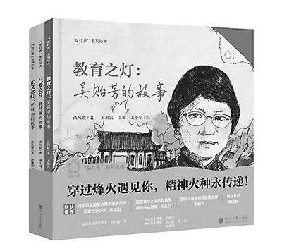 細(xì)心的讀者會發(fā)現(xiàn):吳貽芳、魏特琳、張純?nèi)绻适碌娜齻€繪本封面底部的波浪相連、綿延不絕,象征她們的高尚情操薪火相繼。“穿過烽火遇見你,精神火種永傳遞”——這是“提燈者”系列繪本的一個創(chuàng)作宗旨,希望這套講述三位女性個人奮斗與家國命運的傳記故事繪本,能喚起人們的歷史記憶,點燃人生理想和志向。讓我們一起守護(hù)不朽的正義信念,共同祈愿人間安康,維護(hù)世界和平。