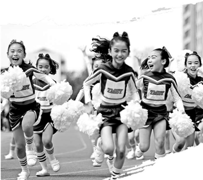 ②學(xué)生進(jìn)行啦啦操比賽。 資料圖片