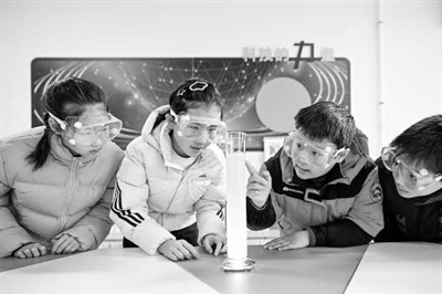 2月3日,在廬陽區海棠街道黨群服務中心,小朋友們正在做科學實驗。趙明 攝