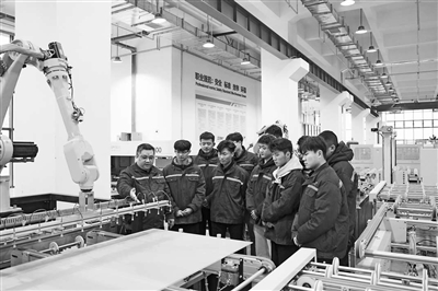 山東理工職院教師指導學生光伏組件生產實習。 學校供圖