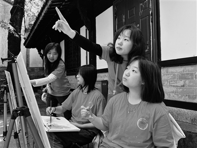 南京師范大學附屬實驗學校的教師在指導學生寫生。 李春楠 攝